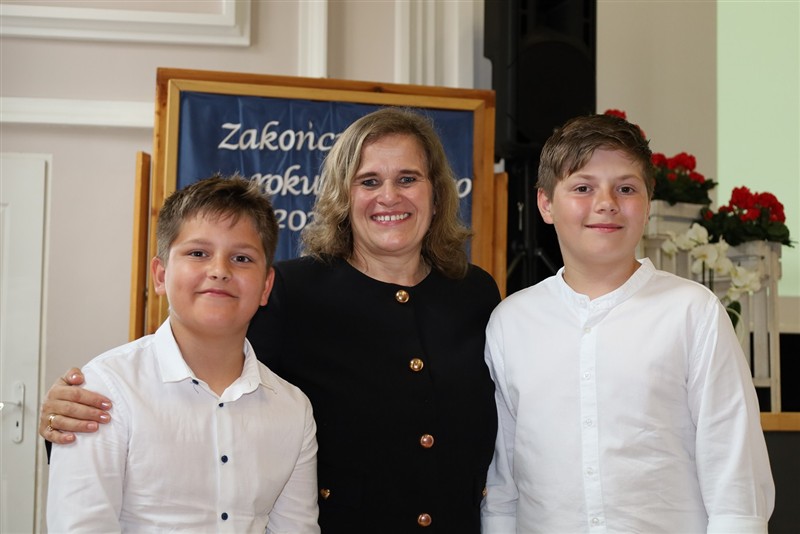 Pani Dyrektor w swoim wystąpieniu podziękowała uczniom za całoroczny wysiłek, nauczycielom za codzienną pracę i zaangażowanie, a rodzicom za współpracę i wsparcie. Życzyła wszystkim bezpiecznych, radosnych wakacji oraz zasłużonego odpoczynku.