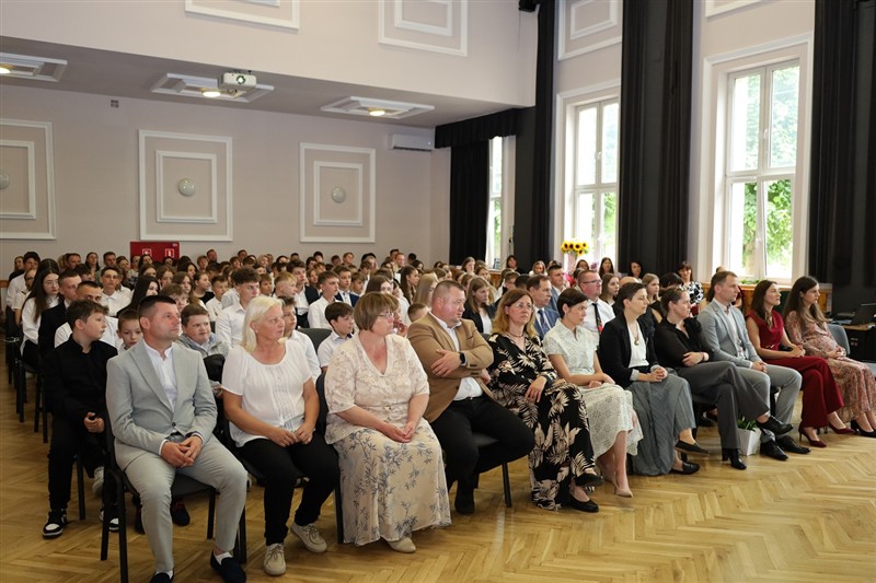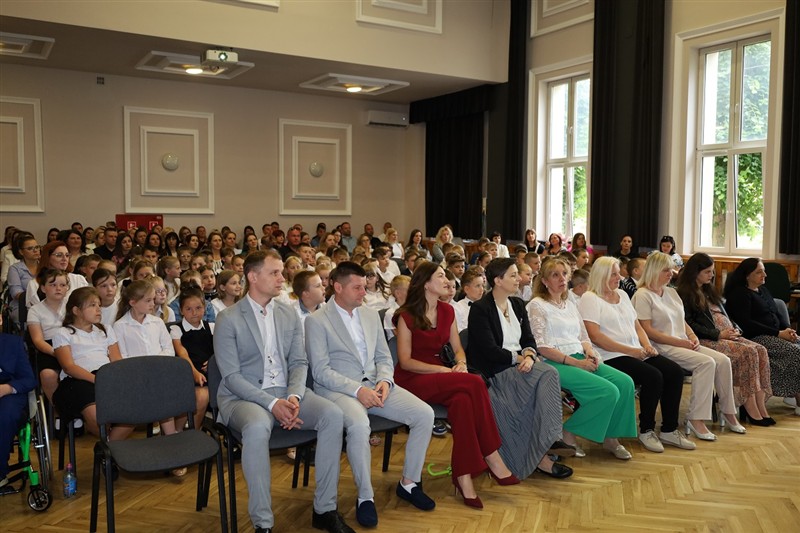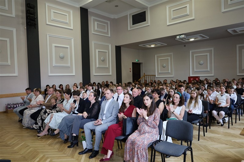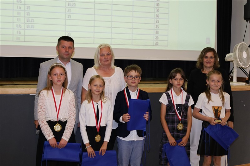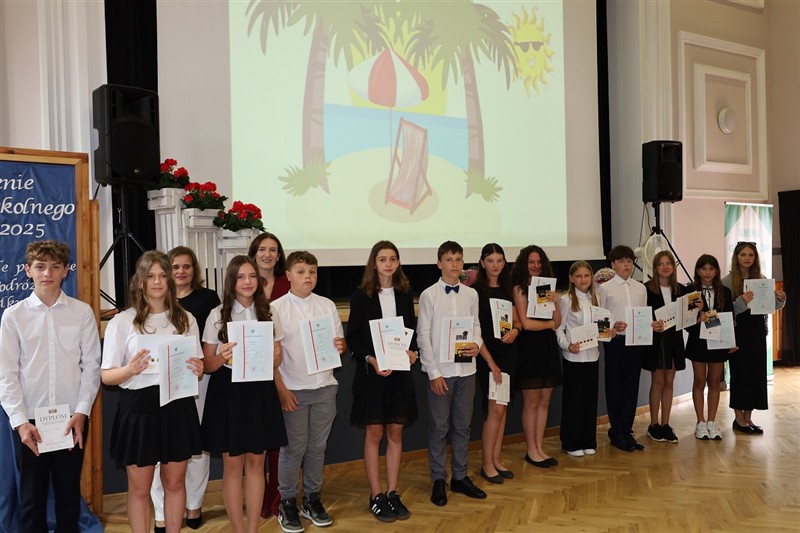 Podczas akademii uczniowie odebrali świadectwa, nagrody oraz wyróżnienia za bardzo dobre wyniki w nauce, osiągnięcia konkursowe i sportowe oraz zaangażowanie w życie szkoły.