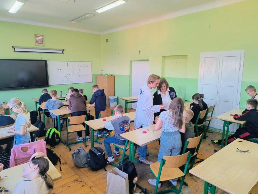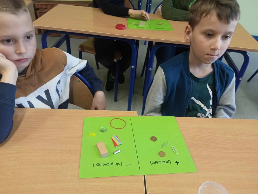 W pierwszej części uczniowie, korzystając ze specjalnych magnetycznych wędek, „łowili” ryby, poznając przy tym materiały przyciągane przez magnes oraz te, które nie reagują na pole magnetyczne. Obserwowali również linie pola magnetycznego oraz porównywali siłę działania magnesów ferrytowych i neodymowych. Na zakończenie każdy uczestnik zabrał do domu własną magnetyczną wędkę, aby móc kontynuować zabawę i eksperymenty.