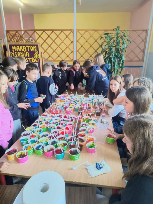 Uczniowie przygotowali prawie dwieście kubeczków, które rozeszły się w błyskawicznym tempie. Zebrane środki zostaną przeznaczone na organizację oraz zakup niespodzianek na dyskotekę andrzejkową dla klas I–III oraz IV–VIII.